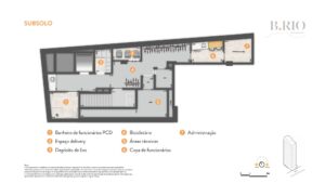 • Espaço delivery: área destinada à armazenagem de entregas, na ausência de moradores, localizada no pavimento subsolo.