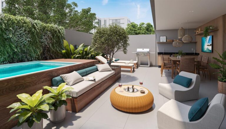 O empreendimento conta também com apartamentos tipo garden, um conceito de apartamentos com um quintal a céu aberto que lembram o jeito de morar em uma casa.