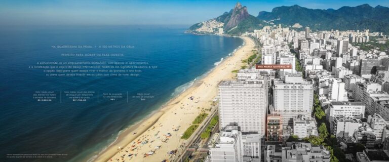 O Riô Signature Residence & Spa é um empreendimento de altíssimo padrão da construtora SIG, localizado na Rua Maria Quitéria, 19, no coração do prestigiado Quadrilátero do Charme de Ipanema, Rio de Janeiro. Com apenas 31 unidades, o projeto oferece um estilo de vida único, combinando sofisticação, conforto e bem-estar em um dos bairros mais desejados do mundo.