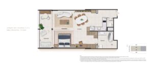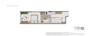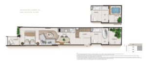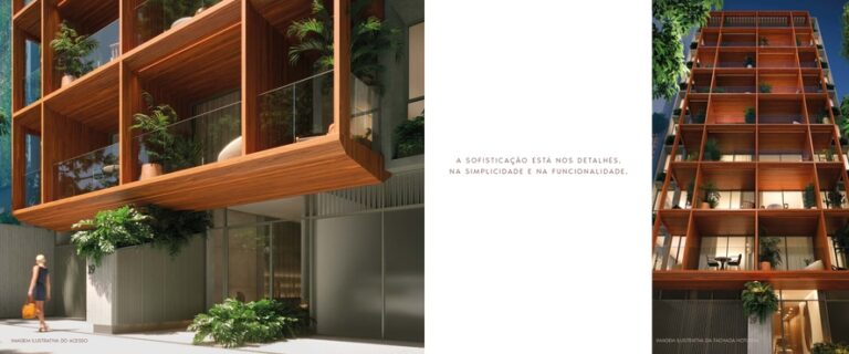 O empreendimento oferece unidades exclusivas com metragens que variam de 38 m² a 130 m², incluindo studios, apartamentos garden e coberturas duplex. Cada unidade foi projetada com plantas inteligentes do tipo lâmina, priorizando o aproveitamento máximo dos espaços, iluminação natural e ventilação cruzada. Os acabamentos são de alto padrão, com automação residencial para controle de iluminação e temperatura.