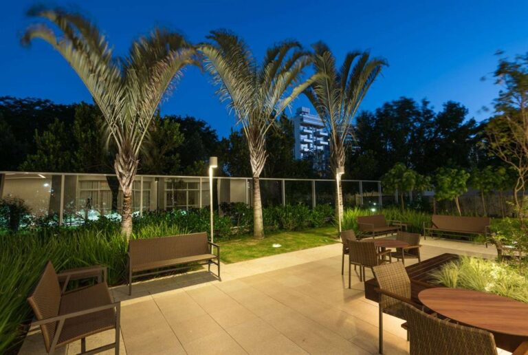 O empreendimento possui fachada revestida em cerâmica com detalhes em granito jateado/escovado e detalhes de pintura acrílica texturizada.
