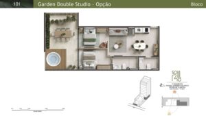 Studios Gardens: Exclusivas unidades com áreas externas privativas, variando de 29 m² a 74 m², proporcionando a sensação de viver em uma casa dentro da cidade.